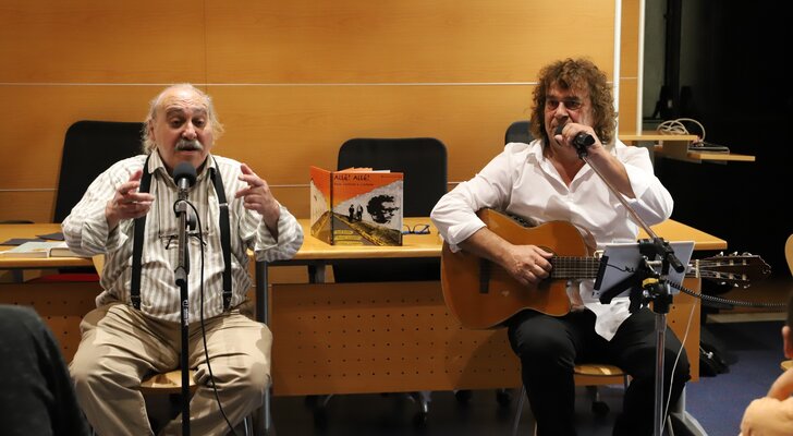 A poesia, as histórias e as músicas de intervenção foram ditas e cantadas pelo poeta José Fanha e pelo compositor Daniel Completo, num espetáculo realizado no Auditório da Biblioteca Municipal da Marinha Grande, na tarde deste sábado, 20 de abril.