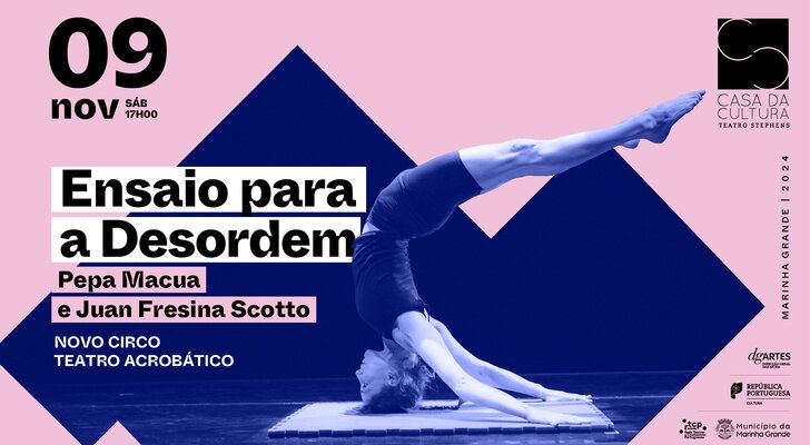 O Teatro Stephens, na Marinha Grande, recebe o espetáculo de novo circo ”Ensaio para a Desordem” é o espetáculo de novo circo com os artistas Pepa Macua e Juan Fresina Scotto, no dia 9 de novembro de 2024, pelas 17h00.