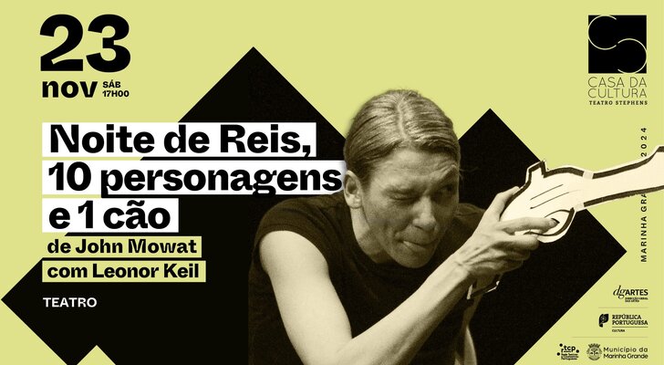 No dia 23 de novembro de 2024, pelas 17h00, o Teatro Stephens, na Marinha Grande, exibe a peça "Noite de Reis, 10 personagens e 1 cão”, de Jonh Mowat e Leonor Keil.