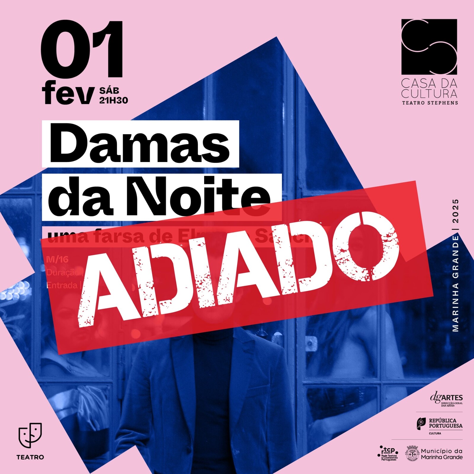 Por motivos de luto municipal, o espetáculo "Damas da noite, uma farsa de Elmano Sancho", foi adiado para dia 15 de fevereiro às 21h30.