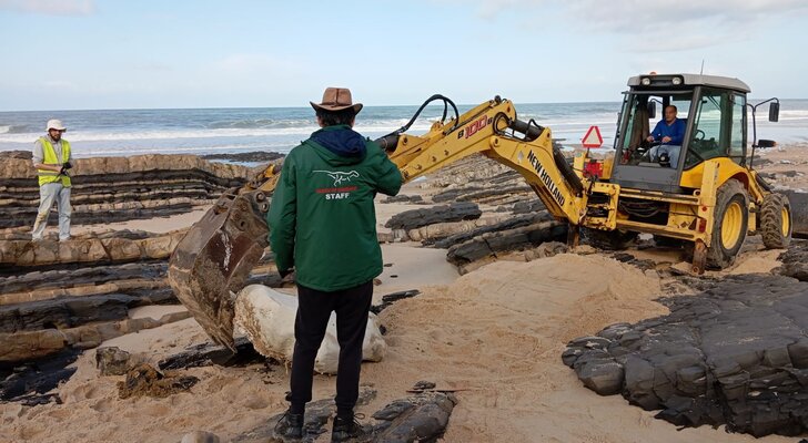 A escavação do esqueleto fossilizado, foi realizada pela equipa de paleontólogos do Museu da Lourinhã e pelos serviços do Município da Marinha Grande, de acordo com as orientações da Agência Portuguesa do Ambiente (APA), tendo contado com a presença do vereador do ambiente, João Brito.
