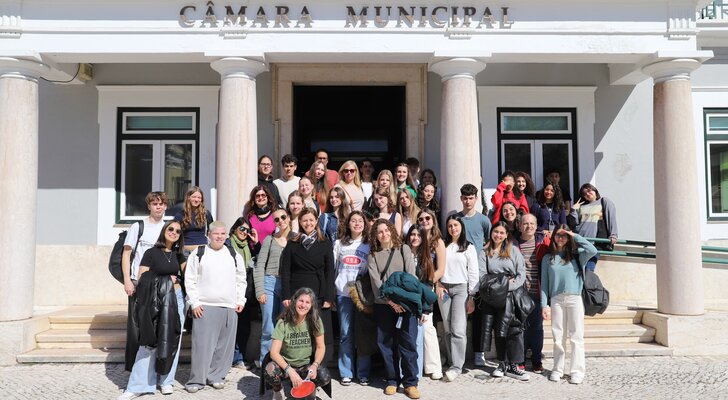 Cerca de 50 alunos e professores que integram o projeto Erasmus+ RACine foram recebidos no Salão Nobre dos Paços do Concelho, no dia 25 de março, pela vice-presidente da Câmara Municipal da Marinha Grande, Ana Alves.