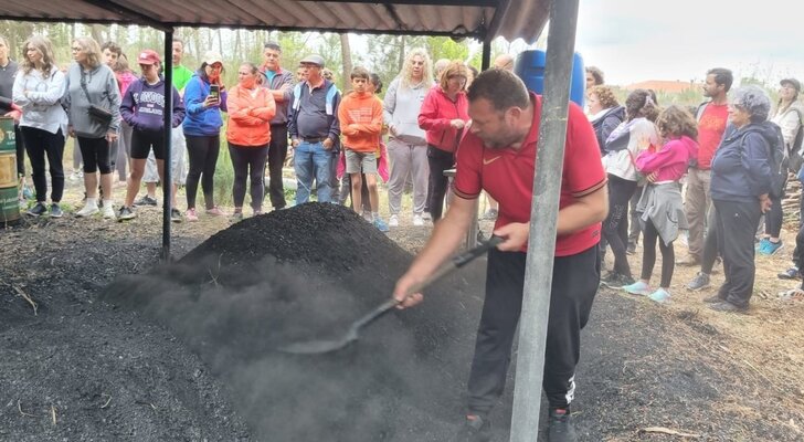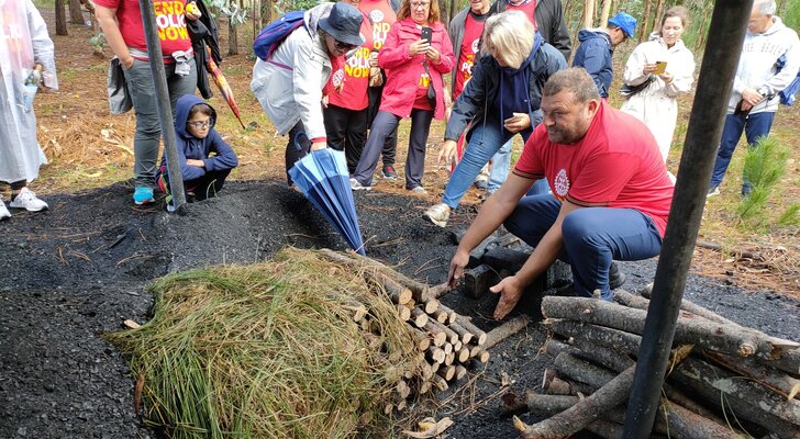 Durante o trajeto, será possível conhecer de perto a realidade das carvoeiras, mulheres de força e resiliência que, com o trabalho duro e constante, transformavam a lenha do Pinhal do Rei em carvão, sustentando as suas famílias e contribuindo para o desenvolvimento económico e cultural local. Um dos pontos altos será a visita a um forno de carvão ainda em funcionamento, onde o público poderá assistir a uma explicação sobre as técnicas tradicionais, orientada por Pedro Paulo, da Sociedade Desportiva e Recreativa do Pilado e Escoura.