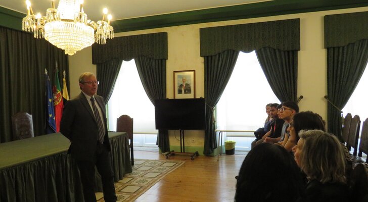 A comitiva foi recebida no Salão Nobre dos Paços do Concelho, na tarde de terça-feira, 8 de abril, pelo presidente da Câmara Municipal da Marinha Grande, Aurélio Ferreira, que deu as boas-vindas com uma breve contextualização histórica da cidade, enaltecendo a importância deste tipo de intercâmbio para enriquecer a comunidade escolar.
