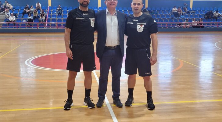 O presidente da Câmara Municipal, Aurélio Ferreira, marcou presença este sábado, 17 de maio, no Pavilhão Gimnodesportivo da Marinha Grande, no último jogo oficial da dupla internacional de árbitros Eurico Nicolau e Ivan Caçador.