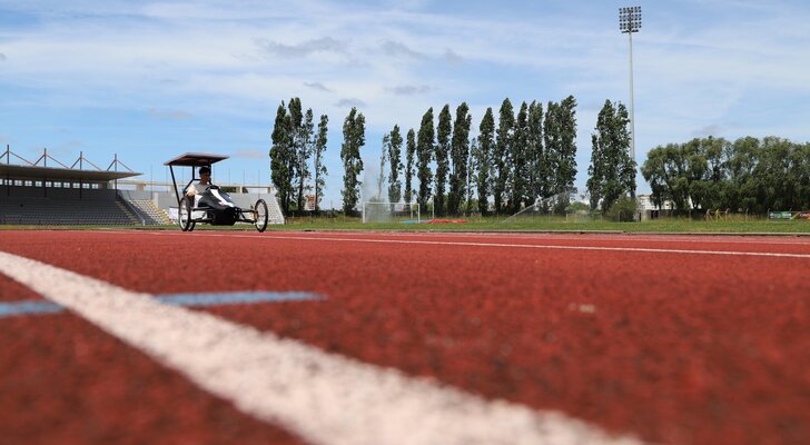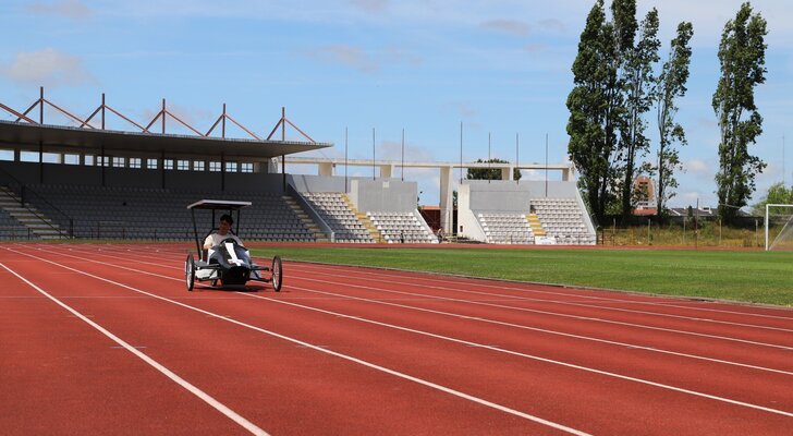 A fim de testar a performance do veículo num piso semelhante ao da competição, foi cedida, no dia 21 de maio, a pista de atletismo do Estádio Municipal da Marinha Grande, para realização de testes essenciais à afinação e segurança do carro.