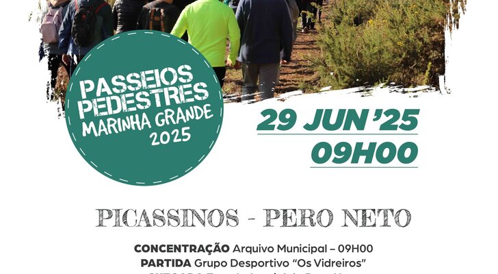 O Município da Marinha Grande vai realizar no próximo dia 29 de junho de 2025, mais um Passeio Pedestre, com início no Grupo Desportivo “Os Vidreiros” (parque de estacionamento) e fim na Zona Industrial do Pero Neto.
