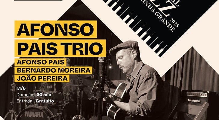 Inspirado pela envolvência intimista dos trios jazzísticos, Afonso Pais, acompanhado por Bernardo Moreira (contrabaixo) e João Pereira (bateria), apresenta um concerto centrado no universo musical de James Bond. As emblemáticas bandas sonoras dos filmes 007 ganham nova vida através de arranjos criativos, num espetáculo marcado pelo groove, swing e entrega ao momento coletivo. A entrada é gratuita e o ambiente de São Pedro de Moel promete elevar ainda mais a experiência musical.