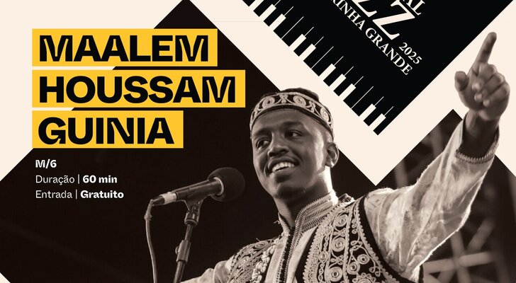 O jovem mestre da música Gnawa, Houssam Guinia, traz à Marinha Grande os sons hipnóticos do folclore cerimonial da África Ocidental. Herdeiro de uma linhagem musical transmitida de geração em geração, Houssam é filho de Mahmoud Guinia, uma das maiores referências deste género. O concerto transporta o público para uma viagem sonora espiritual e profunda, através do uso do tradicional instrumento guembri e de ritmos ancestrais com grande carga simbólica e curativa.