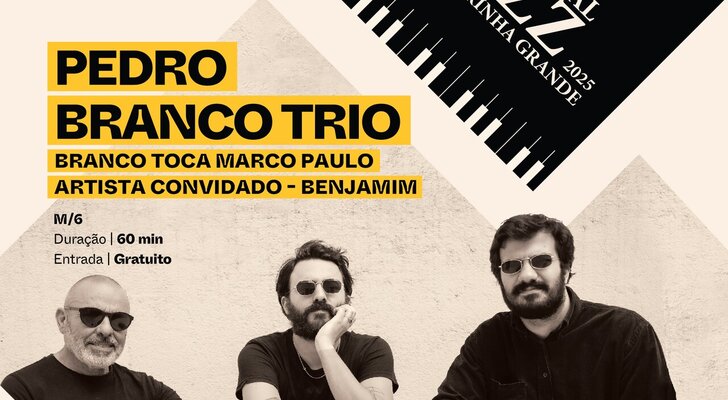 O guitarrista Pedro Branco apresenta o projeto "Branco toca Marco Paulo", uma reinvenção jazzística da obra do icónico cantor português. Acompanhado por João Sousa (bateria) e Carlos Barretto (contrabaixo), Branco revisita temas de discos menos conhecidos como "Ver e Amar" (1970), bem como clássicos como “Eu Tenho Dois Amores” ou “Sempre que Brilha o Sol”. Para este espetáculo especial, o trio convida Benjamim, nome marcante da cena indie nacional, que empresta voz, guitarra e sensibilidade a um concerto que une improvisação contemporânea e memória coletiva com irreverência e emoção.