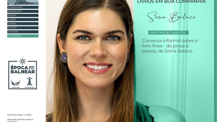 Desta vez, a proposta é literária: “Livros em Boa Companhia” com Sónia Balacó. A atriz e autora estará presente para uma conversa informal sobre a sua obra “Rosa – da prosa à poesia”, num momento que promete conjugar literatura, partilha e reflexão em ambiente descontraído e intimista.