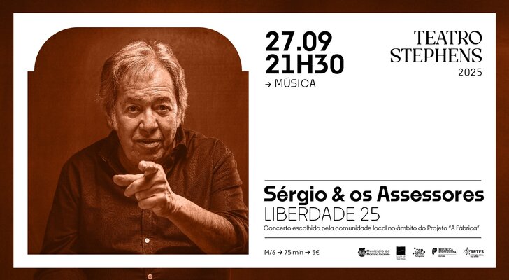 O Teatro Stephens, na Marinha Grande, recebe no próximo dia 27 de setembro de 2025, às 21h30, o concerto “Liberdade25”, de Sérgio Godinho & Os Assessores.