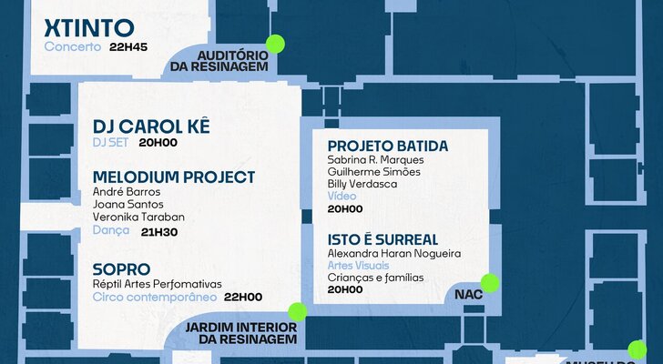 O Quarteirão Cultural inclui ainda a dinamização de lojas pop up, com criatividade e gastronomia, bem como a abertura noturna das lojas e dos Museus da Resinagem, permitindo a fruição do espaço por parte do público.