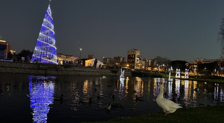 Entre os vários elementos decorativos, destaca-se a imponente Árvore de Natal Gigante, com cerca de 25 metros de altura, instalada junto ao lago, no Parque da Cerca, o verdadeiro ex-libris do Natal na Marinha Grande e um cenário imperdível para os visitantes.
