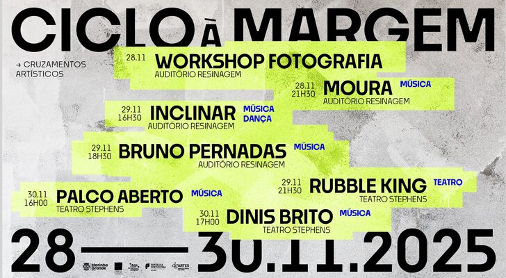 O Município da Marinha Grande promove, entre 28 e 30 de novembro, mais uma edição do Ciclo à Margem, um programa que cruza música, dança, performance e novas linguagens artísticas, distribuído pelos espaços culturais da cidade, cuja participação é gratuita.