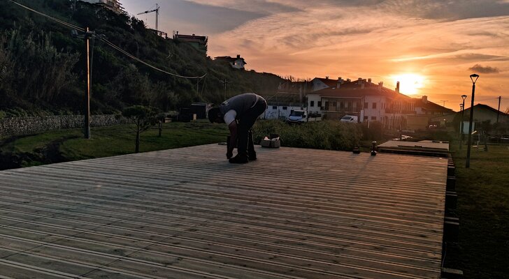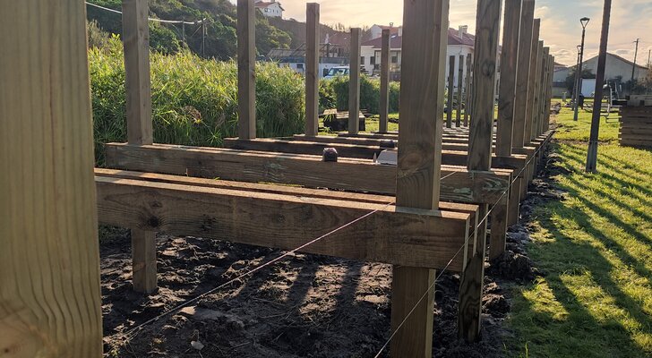 As estruturas apresentam um elevado nível de degradação devido ao desgaste natural fruto do tempo, apesar de serem alvo de uma manutenção regular. A intervenção tem como objetivo reabilitar as estruturas de madeira, incluindo vedações, mobiliário urbano e passadiço, valorizando, simultaneamente, todo o espaço envolvente, nomeadamente o recreio.