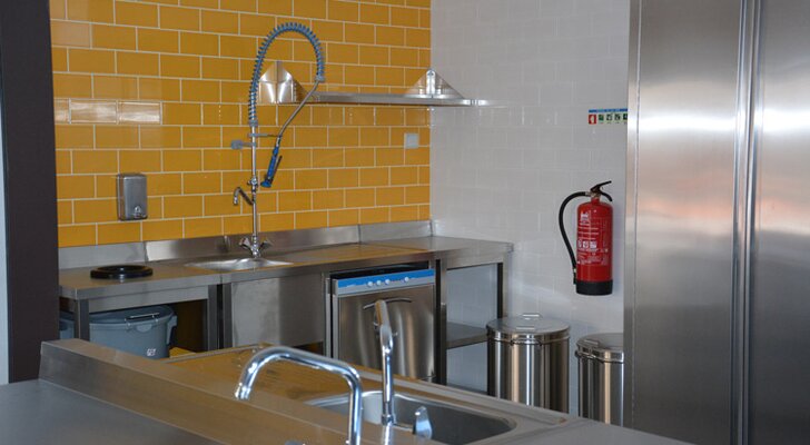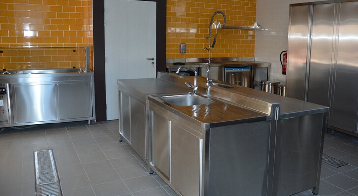 A cozinha foi objeto de requalificação total, ao níel dos seus revestimentos, equipamentos e infraestruturas. A reorganização das suas especificidades funcionais foram acauteladas, desde a lavagem dos alimentos, ao seu fornecimento, recolha e limpeza, e arrumação.