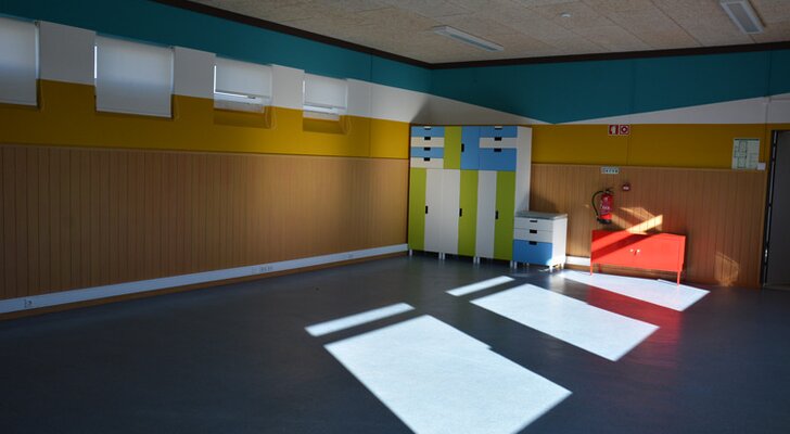 Foi ampliado e alterado o interior da cantina, com remodelação da cozinha e arrumos e nova despensa e área de vestiário/ instalação sanitária para os funcionários, acedidos através de novo espaço de circulação com acesso de serviço ao exterior.