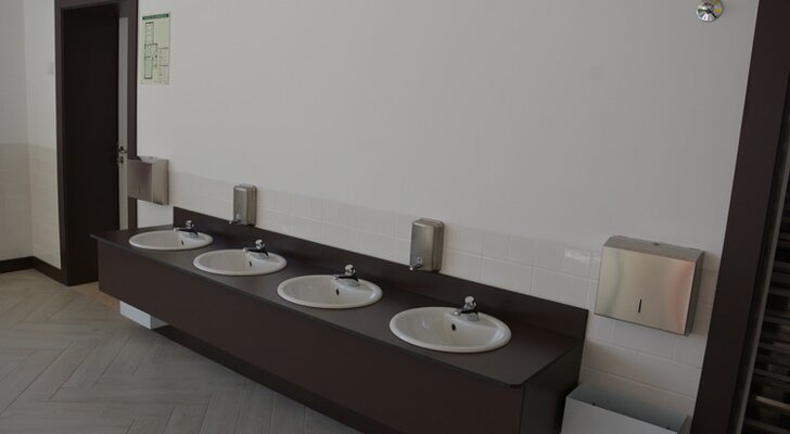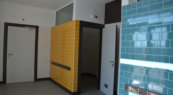 Foram construídas instalações sanitárias divididas por sexo para as crianças utilizadoras do espaço de refeitório e biblioteca.