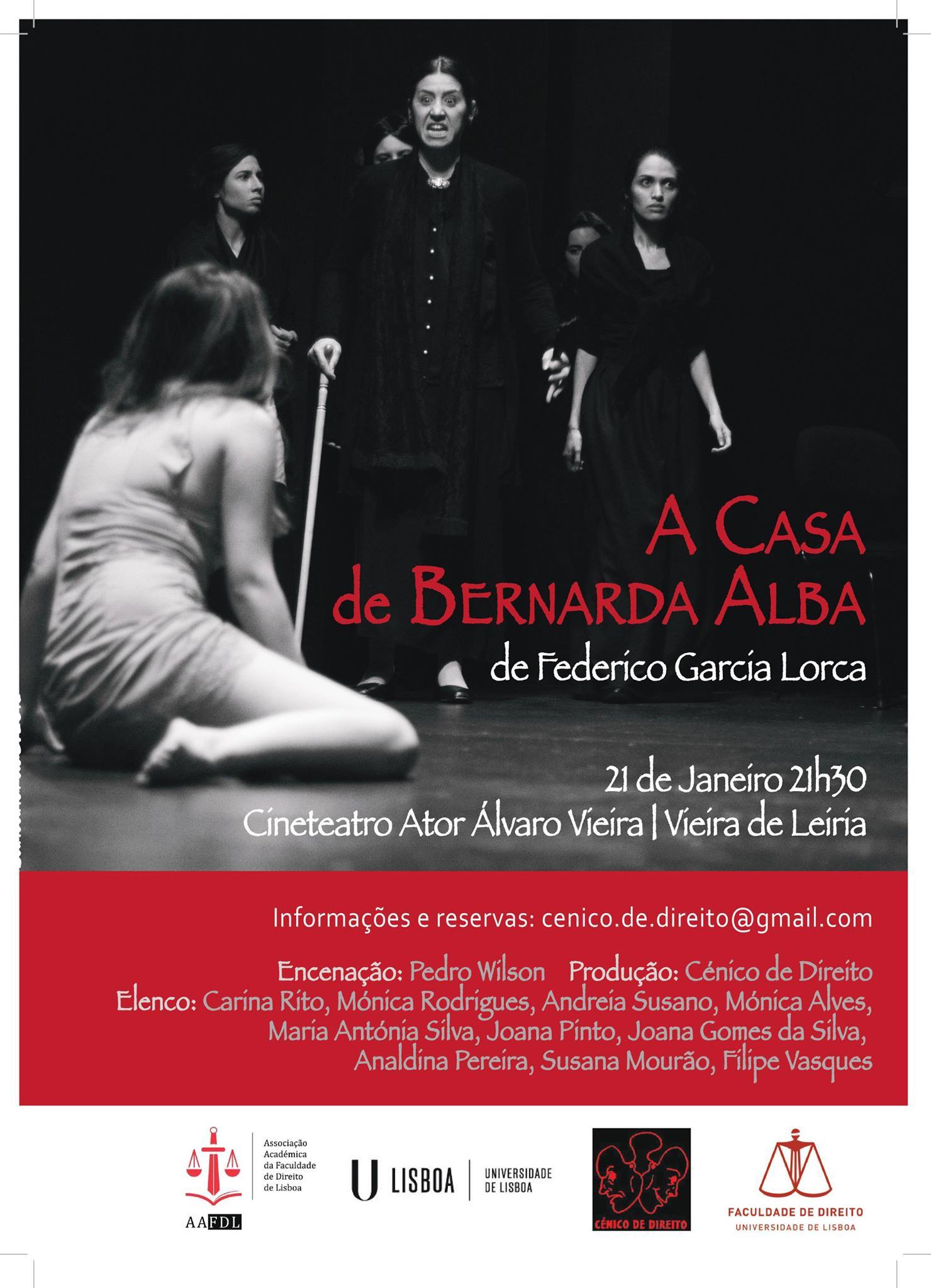 O Cine-Teatro Actor Álvaro, situado no Largo da República, em Vieira de Leiria, é palco da exibição da peça “A Casa de Bernarda Alba”, pela companhia de teatro Cénico de Direito, no dia 21 de janeiro (sábado), pelas 21h30.