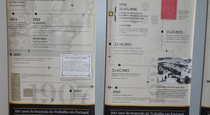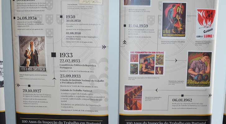 Trata-se de uma exposição comemorativa do centenário da Inspeção do Trabalho Portuguesa, onde se apresentam os marcos históricos deste período de 100 anos. É destacada a influência da Organização Internacional do Trabalho sobre o mundo laboral português, a matriz do Direito do Trabalho e o seu ajustamento aos novos cenários, as instituições enquadradoras da dinâmica do Trabalho, em particular a Inspeção do Trabalho.