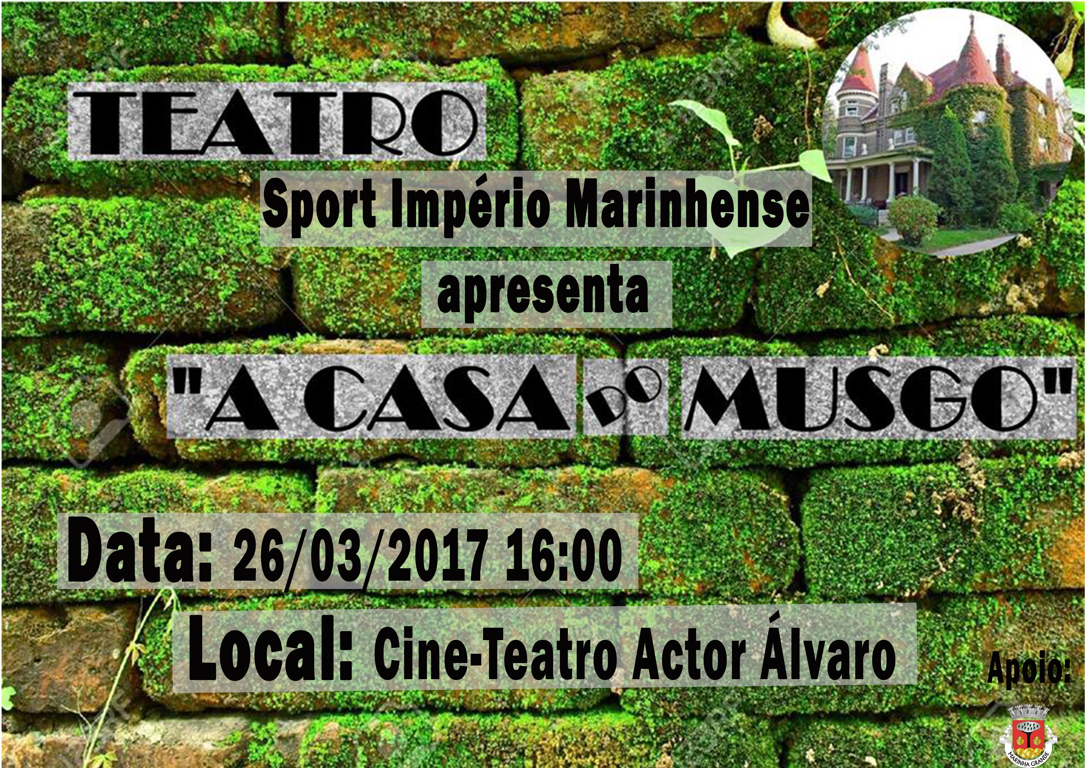 O Cine-Teatro Actor Álvaro, situado no Largo da República, em Vieira de Leiria, recebe a exibição da peça “A Casa do Musgo”, pelo Grupo de Teatro do Sport Império Marinhense, no dia 26 de março (domingo), pelas 16h00.