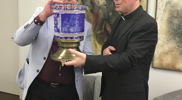 O presidente ofereceu uma peça em cristal, lapidada e com a gravação da última ceia, “representativa da nossa História e da nossa Tradição na arte de trabalhar o Vidro, sendo esta uma réplica de igual peça que está no nosso Museu do Vidro, da artista marinhense Vilma Libano”.
