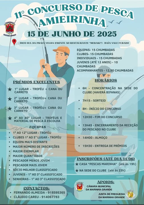 Inscrições até ao dia 14/06/2025 na sede do clube (até as 23h), ou na casa "Pescas Marinha" (até às 19h)