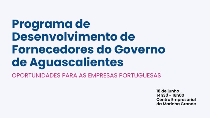 No próximo dia 18 de junho, entre as 14h30 e as 16h00, o Centro Empresarial da Marinha Grande acolhe uma apresentação exclusiva do Programa de Desenvolvimento de Fornecedores do Governo de Aguascalientes, dirigida a empresas portuguesas dos setores automóvel, tecnológico, aeroespacial e eletrónico.