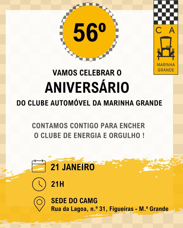 Na próxima quarta feira, dia 21 de janeiro, o Clube Automóvel da Marinha Grande vai soprar 56 velas!